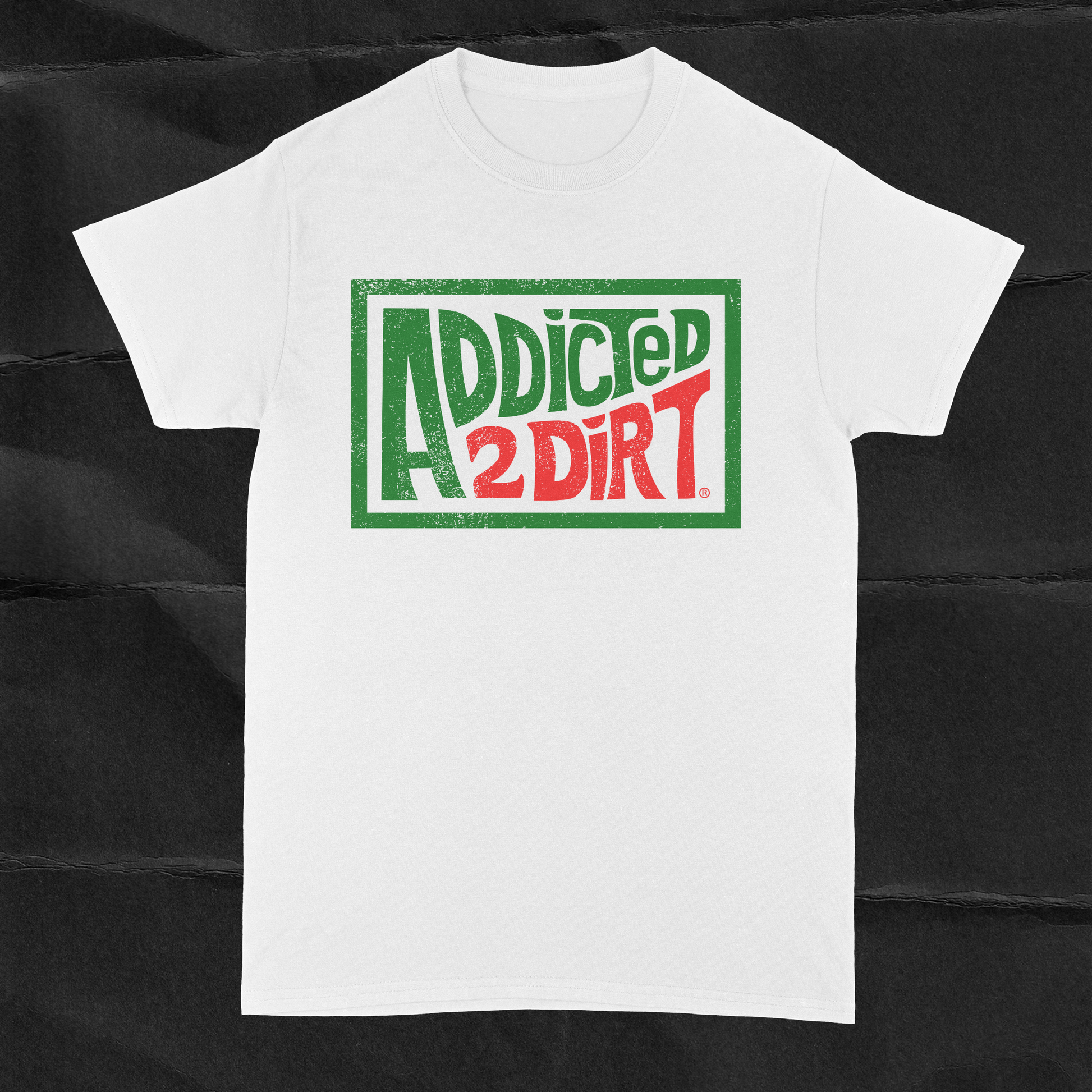 A throwback with dirt roots. The Dew the Dirt Tee is a nod to the classic Mountain Dew logo, reworked the Addicted 2 Dirt way. Featuring a bold front box logo with vintage-inspired style, this tee brings old school energy to modern dirt track culture. Built for race nights, pit hangs, and anywhere the lifestyle follows you.